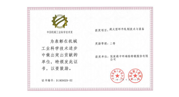 中環(huán)海陸憑借長期技術(shù)研發(fā)和強(qiáng)大的技術(shù)創(chuàng)新能力,在工業(yè)金屬鍛件領(lǐng)域取得了重大創(chuàng)新與成果,榮獲了國家科技進(jìn)步獎二等獎1項(xiàng)、中國機(jī)械工業(yè)科學(xué)技術(shù)進(jìn)步二等獎1項(xiàng)、中國優(yōu)秀專利獎2項(xiàng)、省科技進(jìn)步三等獎2項(xiàng)。承擔(dān)國家火炬計(jì)劃項(xiàng)目2項(xiàng),省重點(diǎn)研發(fā)項(xiàng)目3項(xiàng)。主導(dǎo)起草行業(yè)標(biāo)準(zhǔn)2項(xiàng),其中《風(fēng)塔法蘭大型環(huán)形鍛件技術(shù)條件》已發(fā)布實(shí)施。現(xiàn)有授權(quán)專利76項(xiàng),其中 發(fā)明 專利42項(xiàng),軟件著作權(quán)2項(xiàng)。